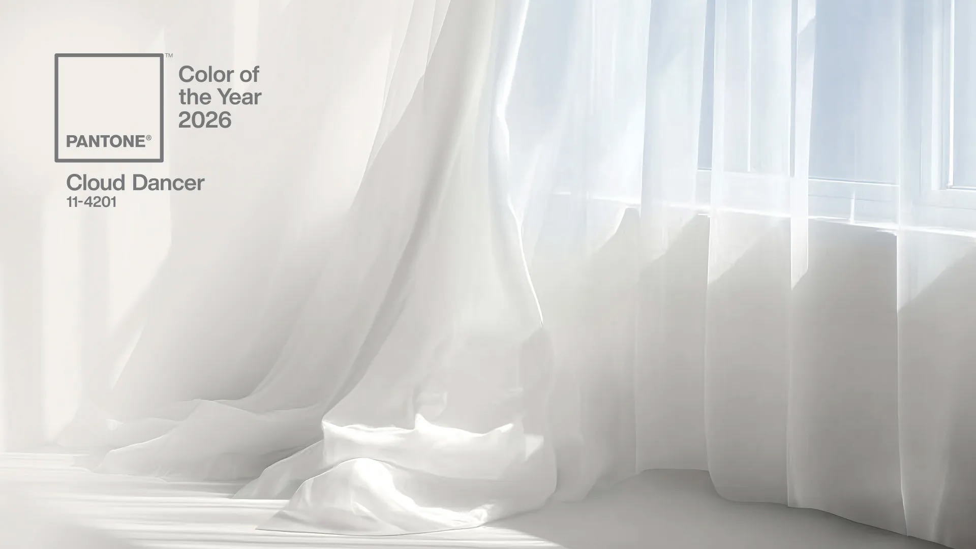 Pantone 日前正式宣布,繼2025年的摩卡慕斯之後,2026 年的年度代表色為「雲舞白」(Cloud Dancer, PANTONE 11-4201)。這款輕盈通透、質地柔軟的白色,就像是喧囂世界中的一則輕柔低語。