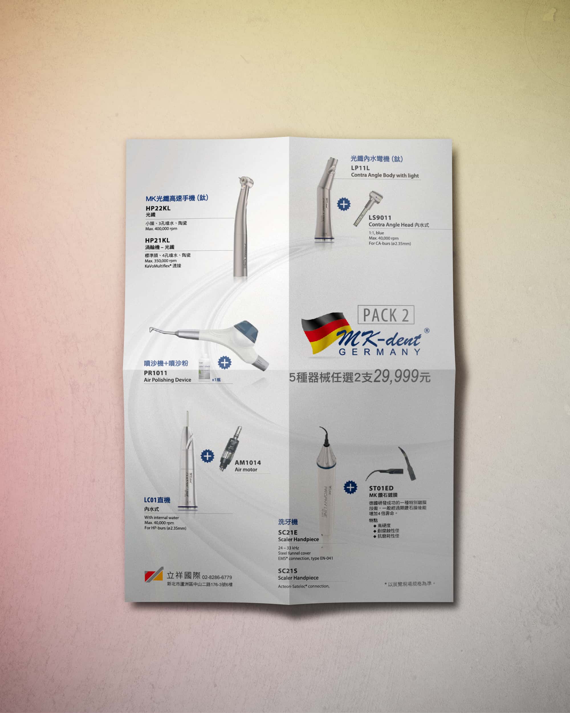 立祥生醫是間經營多年,提供牙科醫療器材販售與維修的供應商。為配合他們持續對外的行銷推廣活動,遂邀請我們為品牌規劃及設計一系列的產品形象宣傳品,展現公司專業形象,吸引顧客目光。